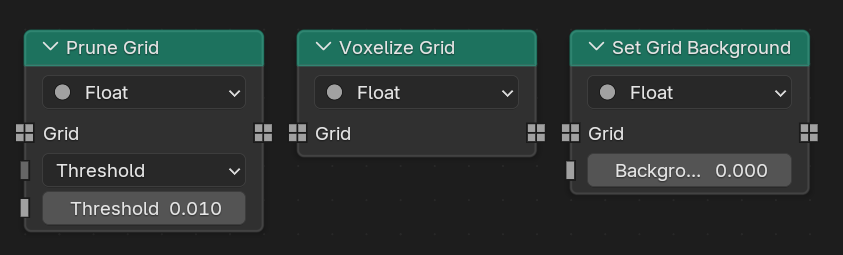 - Active Status: Each voxel and tile has an active status. If it is active, it stores a value itself. If it is inactive, it uses the grid’s background value, which can be set using the Set Grid Background node. Most operations just ignore inactive voxels.