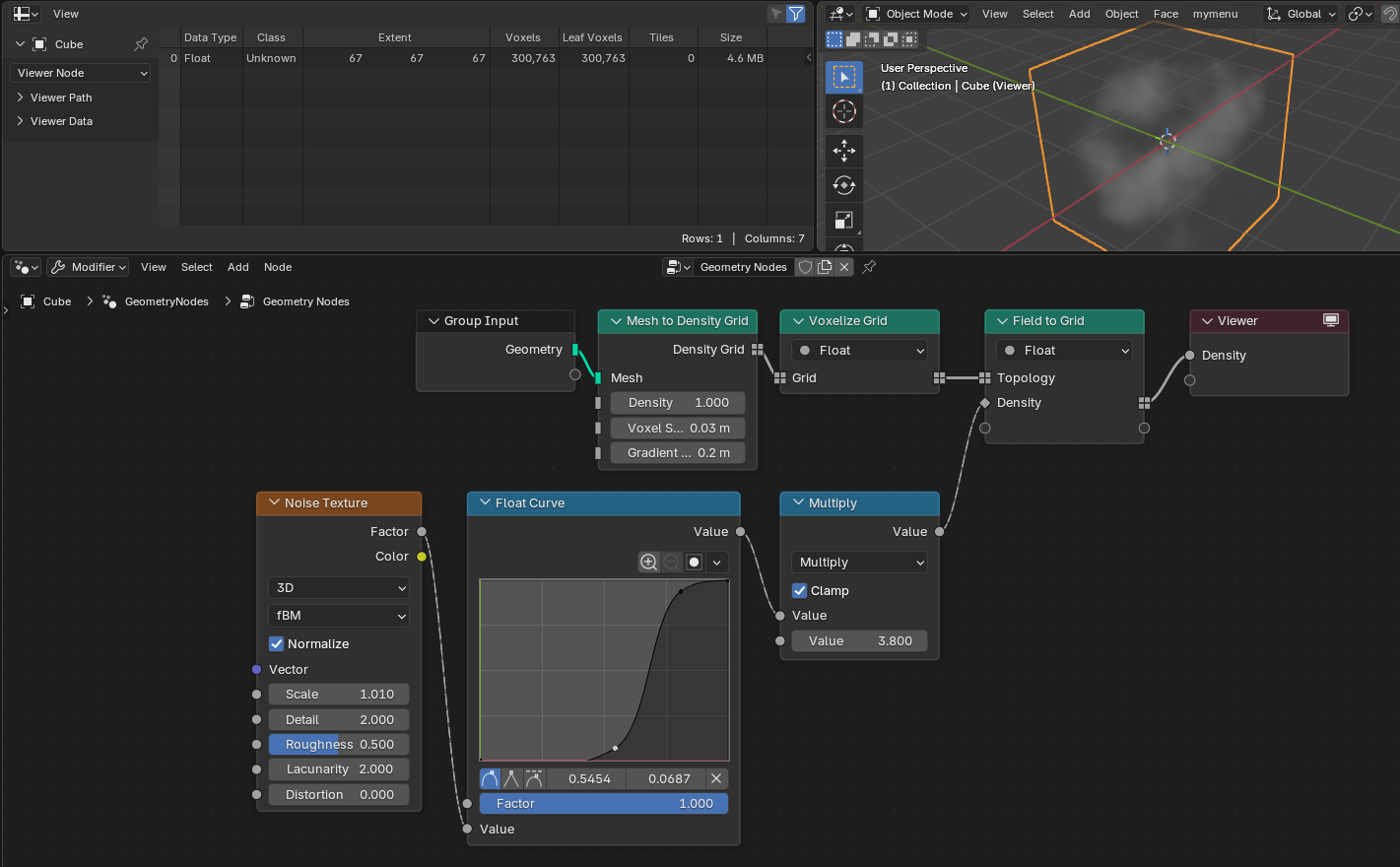Volumetric data is one of the core geometry types next to meshes, point clouds and curves. While there are already many ways to process the last three, the Geometry Nodes feature set for using volumes was very limited and mainly involved converting between volumes and other types; actually editing volumetric data was not really possible.