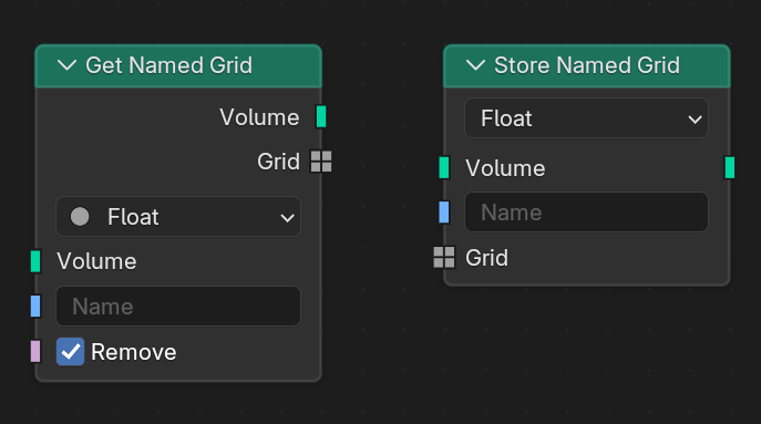 At the core of this update is the new volume grid data type, corresponding to volumetric data with a specific data-type, be it floats, vectors, or another primitive type. Nodes that work on grids explicitly use the new grid socket shape. The color of the socket indicates what kind of grid it is. A common use-case is to use a float grid to store density values.