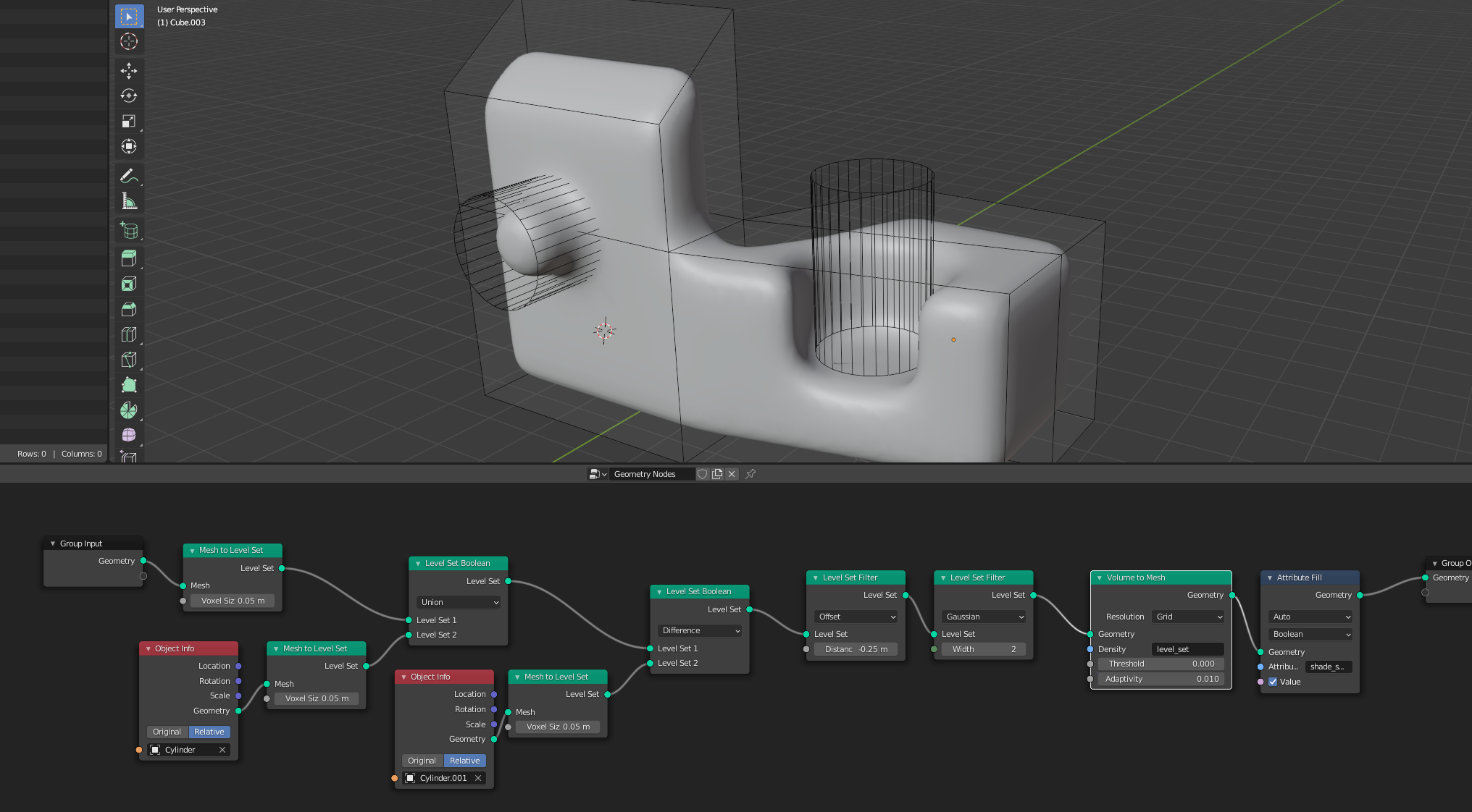 The great benefit of building on top of OpenVDB is that it comes with a large set of ready-made algorithms to work on volumetric data that can be easily exposed in Geometry Nodes.